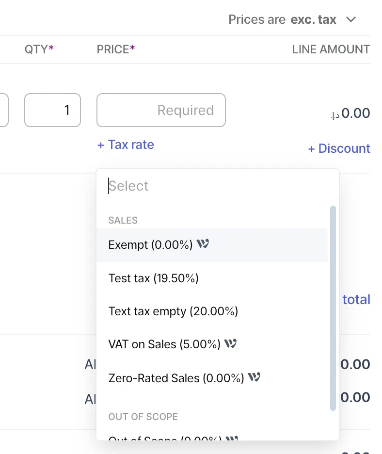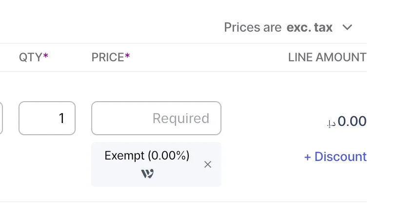 - Once selected, the badge next to the tax rate will also display the Wafeq logo.