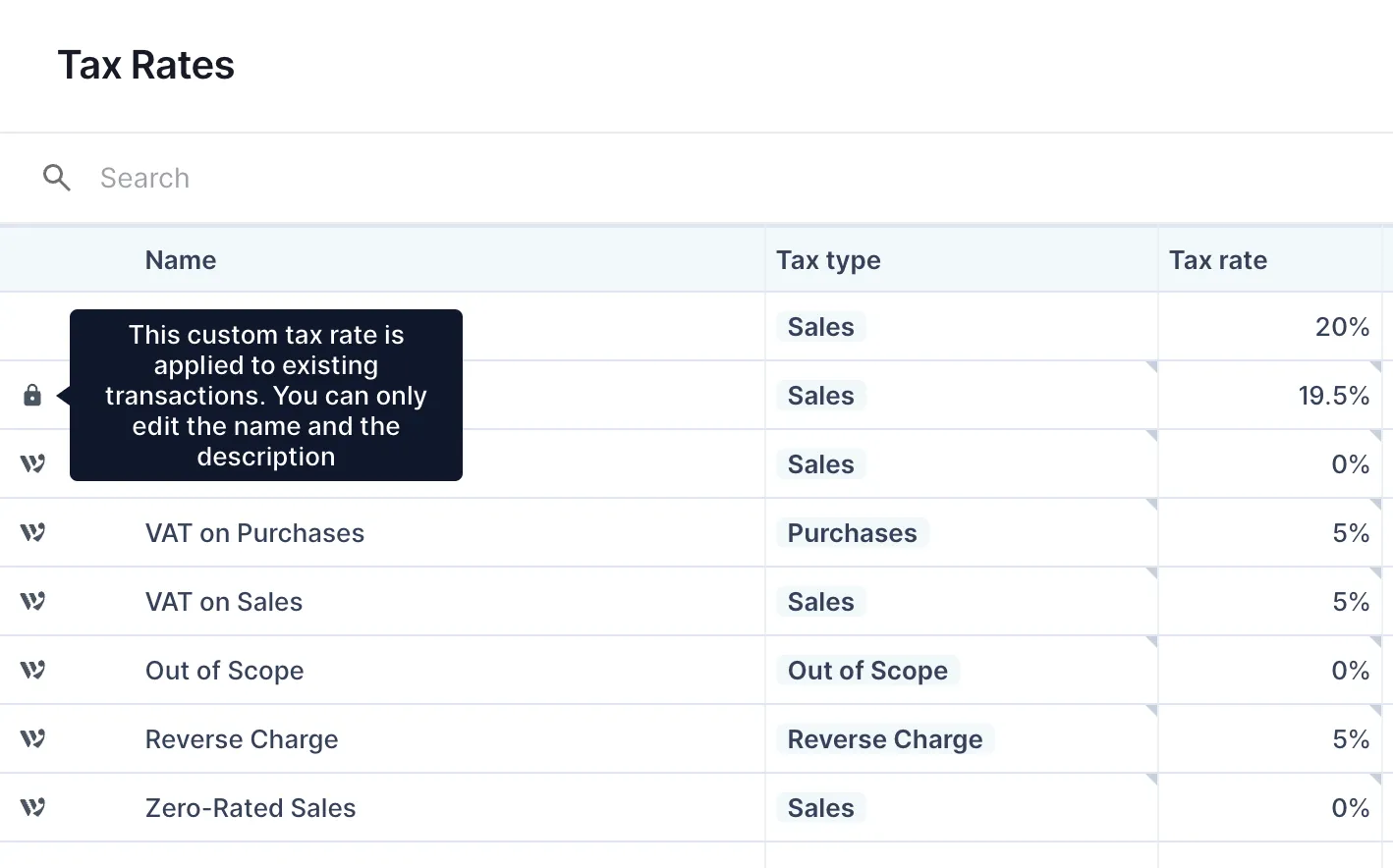 If no icon is present, it means the tax rate is custom, and you have full control to edit it.