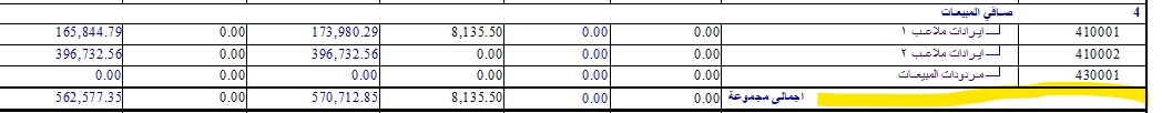 2- نرغب ان يكون في ميزان المراجعه للحسابات الفرعية في جانب الايرادات صف يجمع اجمالي جميع الحسابات الفرعية.