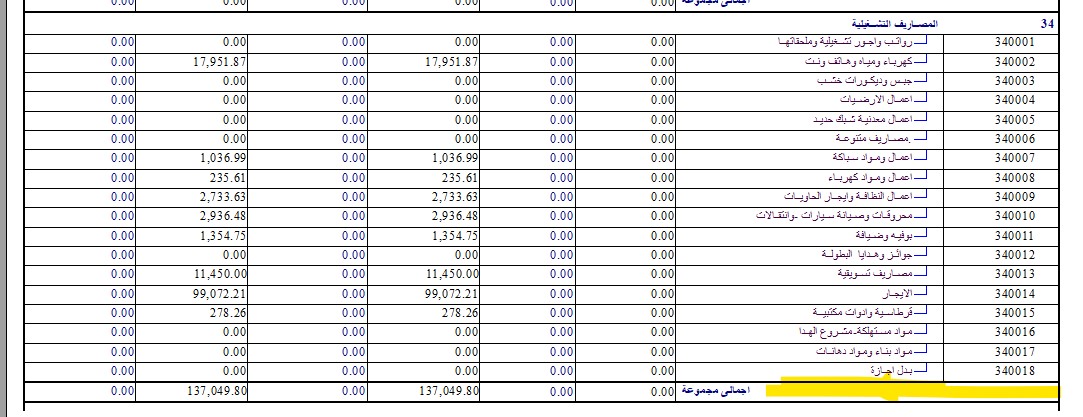 1- نرغب ان يكون في ميزان المراجعه للحسابات الفرعية في جانب المصروفات صف يجمع اجمالي جميع الحسابات الفرعية لحسابات المصروفات العموميه والادارية وكذلك لحسابات المصروفات التشغيلية .